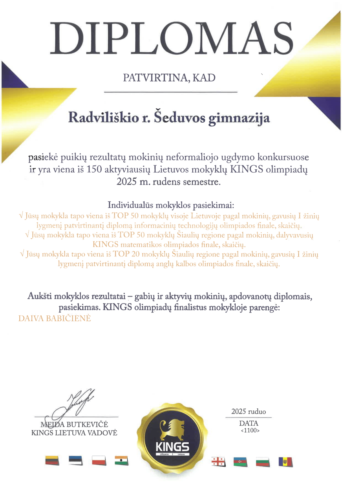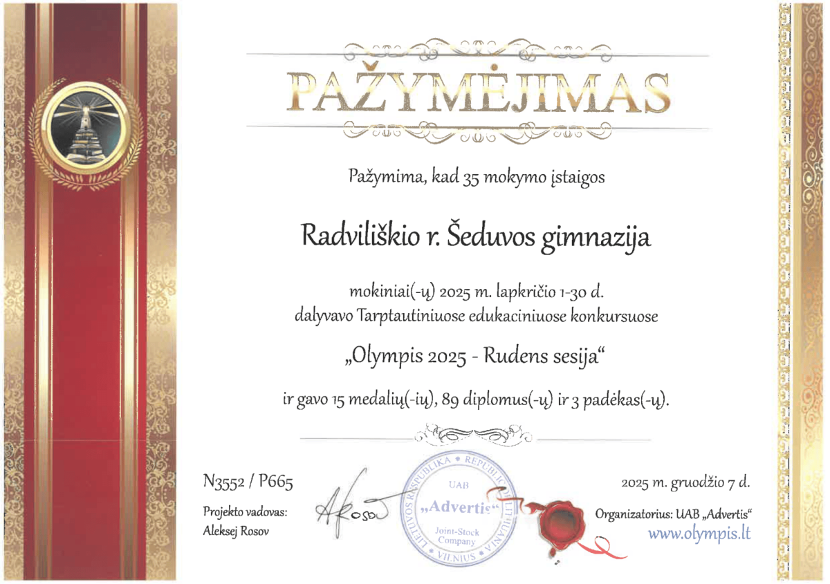 Olimpiadų, konkursų, prizininkų pasiekimai