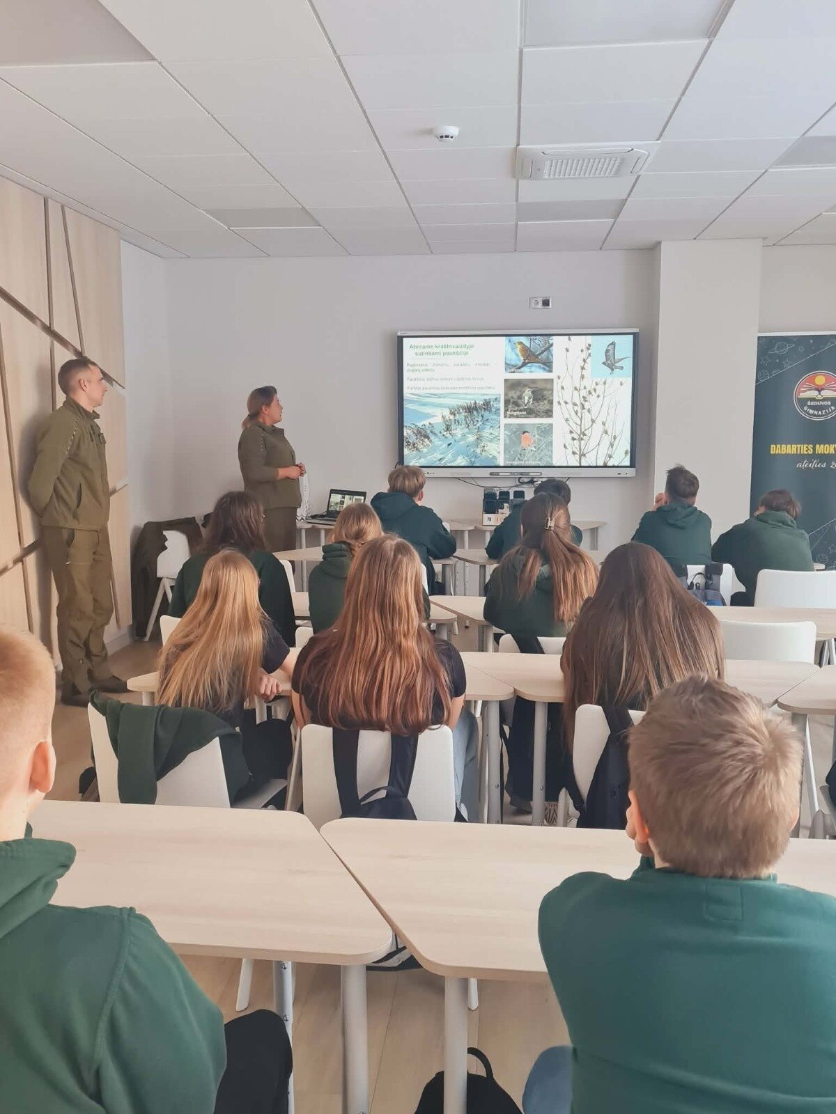 Paskaitos metu specialistai pasakojo, kurie paukščiai lieka žiemoti Lietuvoje, kaip jie prisitaiko prie šaltojo metų laiko ir kokią pagalbą jiems gali suteikti žmonės. Mokiniai sužinojo, kuo minta zylės, sniegenos, geniai ar krankliai, kodėl svarbu tinkamai lesinti paukščius ir kokio maisto geriau vengti. Buvo pabrėžta, kad atsakingas elgesys gamtoje padeda išsaugoti paukščių populiaciją.