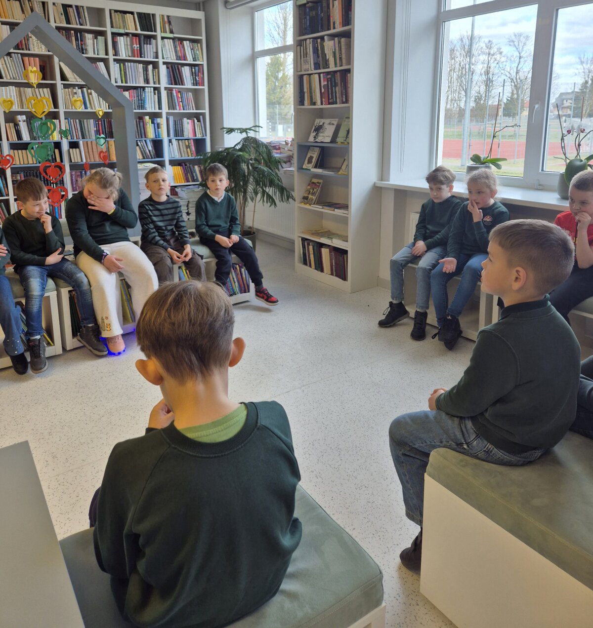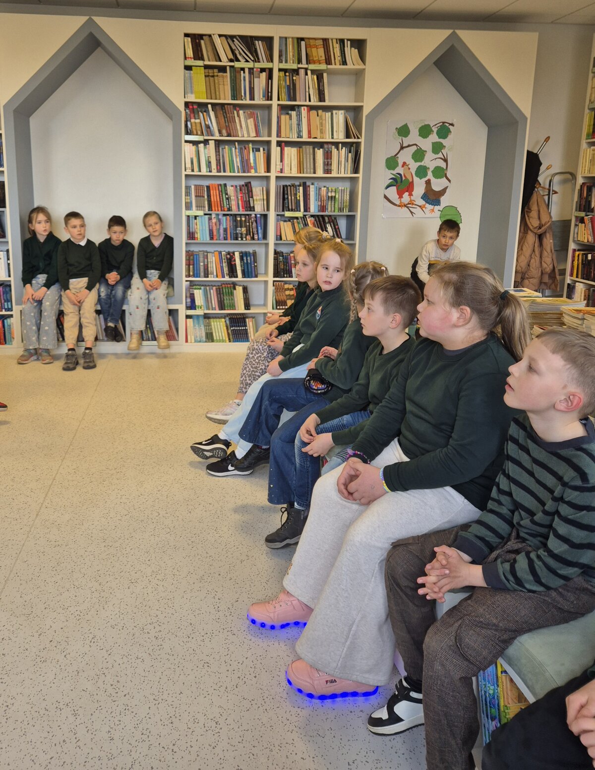 Mokiniai klausėsi įgarsintos Lorenz Pauli ir Kathrin Scarer knygos „Piplioteka??? Lapė bibliotekoje“. Po to visi kartu aktyviai diskutavo ir drąsiai reiškė savo nuomonę, kodėl svarbu skaityti knygas. Viktorinoje „Kur dingo raidelė?“ pasitikrino, kaip gerai jie pažįsta raides ir moka skaityti. Bibliotekininkė  supažindino mažuosius skaitytojus su bibliotekos elgesio taisyklėmis, knygelių išdavimo ir grąžinimo tvarka, jų priežiūra bei išsiaiškino, kaip susirasti norimą knygą. Vaikai sužinojo, kad biblioteka – tai ne tik knygelių išdavimo vieta, bet ir informacinis centras, kuriame vyksta įvairūs edukaciniai renginiai, rengiamos vaikų darbelių parodos, čia galima ateiti paskaityti ar atlikti namų darbus.