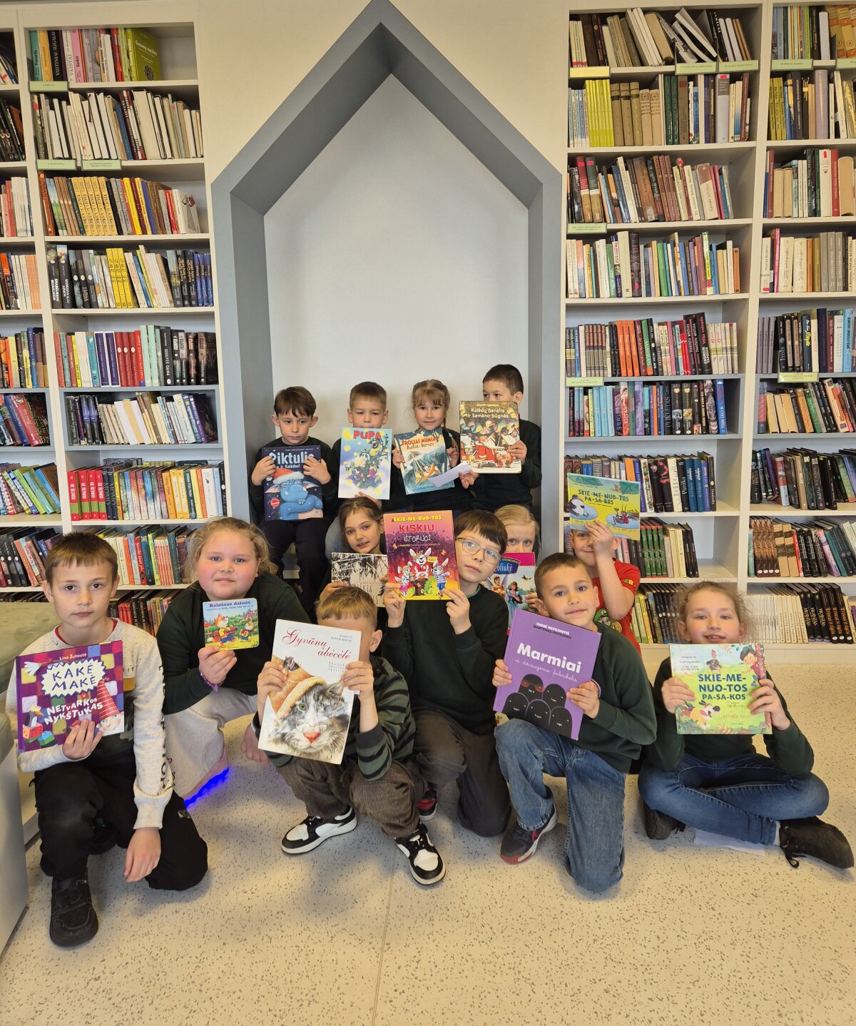 Apžiūrėję biblioteką, pavartę knygeles, nekantrūs pirmokai skubėjo išsirinkti skaitinių ir į namus. Džiugu, kad mūsų mažieji skaitytojai auga tokie smalsūs ir taip mylintys knygą.