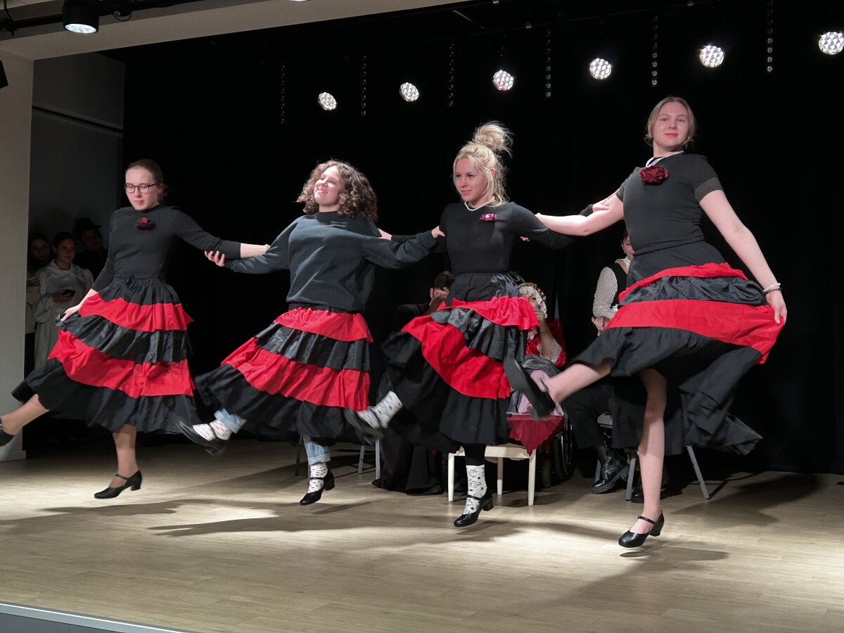 Būrelyje „TEAtriukas“ vaidina vyresniųjų klasių mokiniai. Mūsų tikslas – pastatyti spektaklį ir jį parodyti gimnazijos bendruomenei. Tai sunkus ir ilgas procesas: pjesės pasirinkimas, skaitymas ir analizė, vaidmenų analizė ir teksto mokymasis, improvizacija, išsilaisvinimas iš stereotipų ir dar daug sunkaus darbo. Kurdamas vaidmenį turi jausti atsakomybę ne tik už save, bet ir kitus, todėl reikia labai gerai apgalvoti pasirinkimus. Smagiausios akimirkos, kai pavyksta, kai jaučiama bendrystė, kai žiūrovai įvertina.